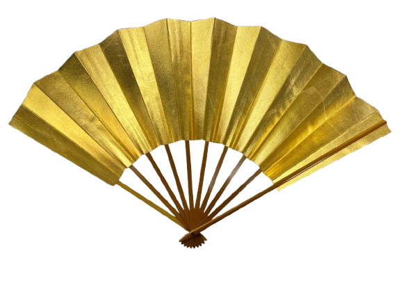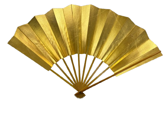 Crafted with traditional gold-leaf paper mounted on natural bamboo ribs, each fan is meticulously handmade by artisans in Kyoto using time-honored techniques passed down for generations.