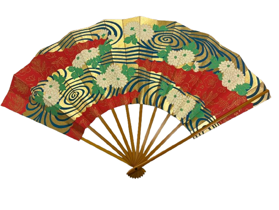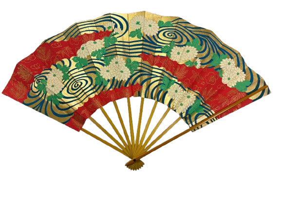 A stunning handcrafted folding fan by Jumatsuya Fukui, Kyoto’s master atelier renowned for creating traditional fans of exceptional artistry.