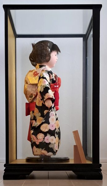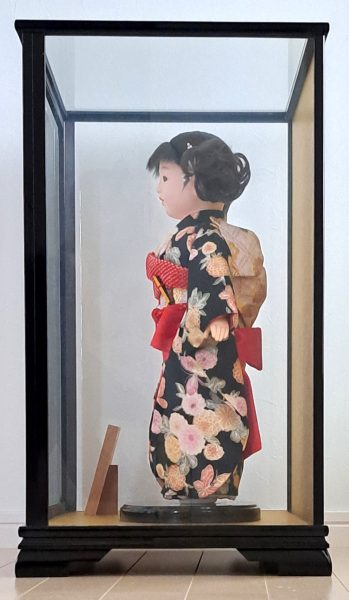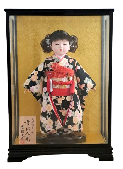 Encased in a custom black lacquer glass display case, this doll is not only a symbol of Japanese grace but also an exceptional collectible for art connoisseurs worldwide.